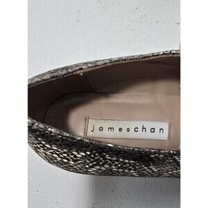 James Chan Gracie Embossed Snakeskin Lace-up Flats Metallic Pointed Toe 6 B