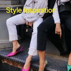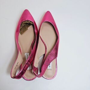 New without box. Excellent condition. Handled in store. Small scuff on left toe box. Has marker writing on sole. Flats! Slingback. Metallic. On trend!