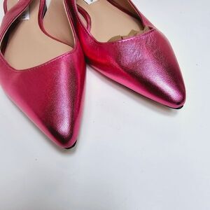 James Chan Nakasey Pink Metallic Sling Back Flat Size 7 NWOB