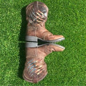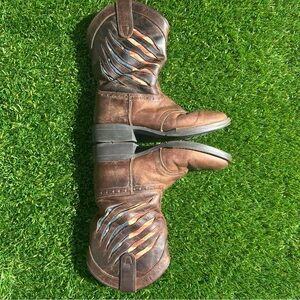 James Cody Kids Sz 3 Ripped Flag Western Leather Brown Cowboy Boots Square Toe