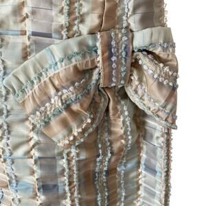 James Coviello NWTs Vintage Plaid Bow Front Pockets dress size 8 Tan Blue. Measurements laying flat chest 17 1/2 inches across and waist 14 inches across and length 45 inches long