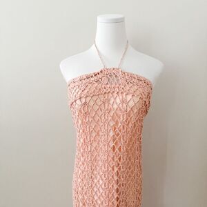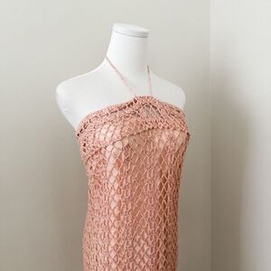 James Coviello Y2K Crochet Knit Halter Dress Small Pink Boho Beachy Coquette