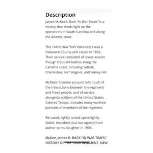 James H. McKee, Back "In War Times," 1st ed., Presented to Author's Daughter