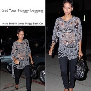 James Jeans Twiggy in Black Cat Wash (which is a dark indigo blue) with contrasting Camel Stitch skinny jeans. Classic 5 Pocket design. Brass rivets and buttons. Excellent for casual office attire. Mid Rise. In excellent like new condition. Approximate measurements in photos.