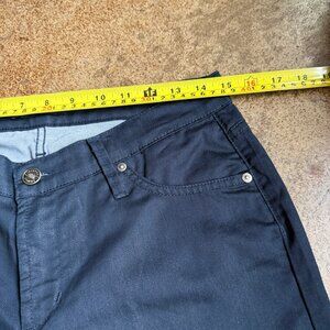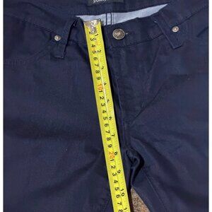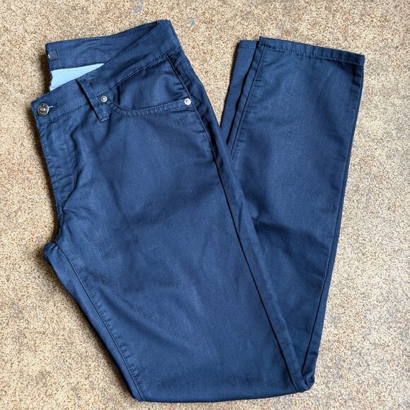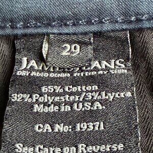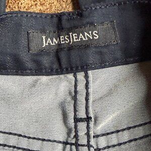 James Jeans Dry Aged Denim “Twiggy” in Black Cat Wash. Dark indigo blue mid-rise skinny jeans with pockets. Pre-owned. Excellent condition.