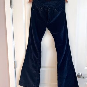 James Jeans midnight blue velvet jean pants. Sz 28. In very good condition. Comfortable, flare leg style that works in an office or as casual wear.
