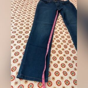 Great condition and has some stretch James Jeans Riley Straight Leg Bootcut Dark Wash Jeans Size 28. Very comfortable. See measurement dimensions in pictures.