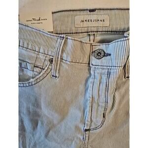 These stylish James Jeans Twiggy Ankle jeans feature a unique blue and white striped pattern.