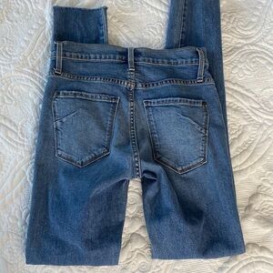 James Jeans Twiggy Throwback super skinny mid / high rise with raw hem. Medium blue wash.