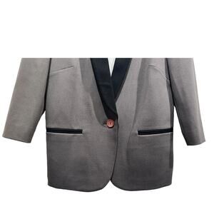 James Jeans Womens Medium Ponte Knit Tuxedo Blazer Jacket Taupe Black Lapel