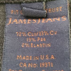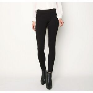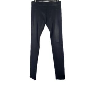 Black denim slip on jeans with faux front pockets and two back pockets. In good condition.