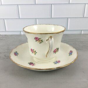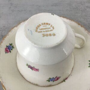 James Kent Floral Tea Cup Saucer Longton England Pink Blue Yellow Flowers