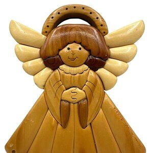 James Knight Handcrafted Wooden Angel Wall Art 2010 Decor Art Brown Tan
