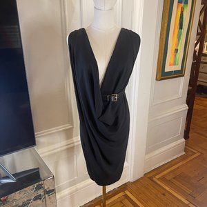 James LaCroix Cowl Shift Dress Black Size M, Draped Overlay Dress,