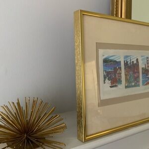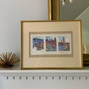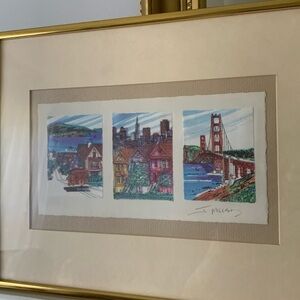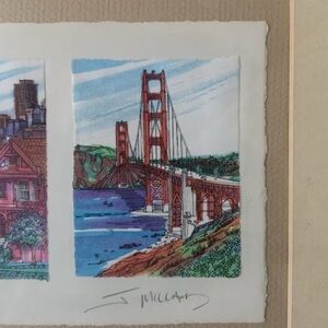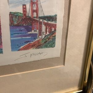 James Millard Golden Gate Bridge Watercolored Matted Print Signed By Artist gold