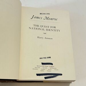 James Monroe Quest For National Identity by Harry Ammon (1971) 1st Edition HCDJ