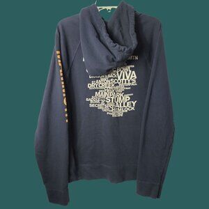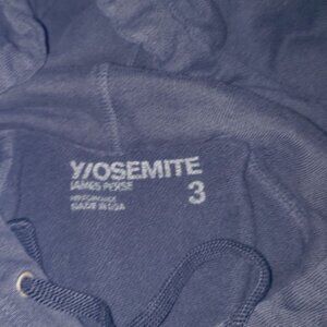 This blue hoodie features a soft yet durable 100% cotton fabric. Graphic printed Designed with a comfortable fit, it includes distinctive Yosemite typography and a timeless style.kangaroo pocket is like new from smoke and pet free home