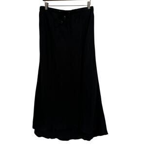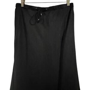 James Perse 100% Linen Drawstring Bias Cut Midi Skirt Black Size 4 NWT