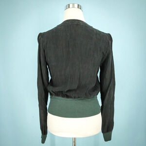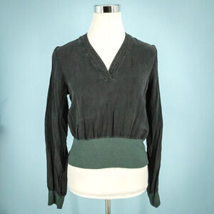 James Perse 2 Size Medium M Washed Black V Neck Long Sleeve Banded Hem Rayon Top Blouse Shirt- Style WBRN3920