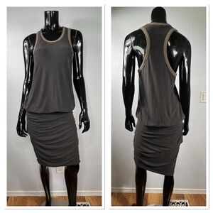 James Perse 2 Tone Razorback Side Ruched Dress Sz 3/L Platoon Pigment Gray