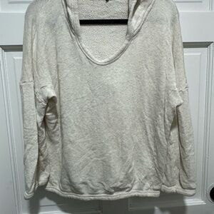 James Perse 4 Cream Hooded Sweater Cropped Lagenlook Minimalist XL