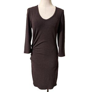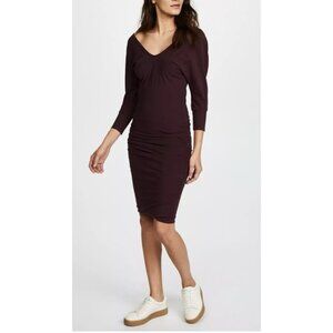 James Perse 4 Dress XL Plum Brown Cotton Long Sleeve Stretch Sheath Ruched $228