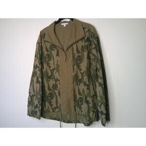 James Perse Army Green Tan Camo Print Zip Band Neck Long Sleeve Jacket 4 / XL