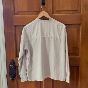 James Perse Beige Mandarin Collar Button Down Shirt Sz 1 or S MSRP $225