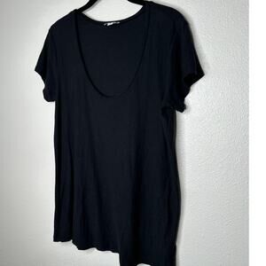James Perse Black Deep V Round Neck Slub Tee Cap Sleeves Top T shirt
