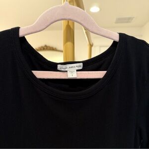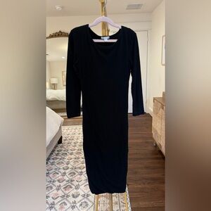 James Perse Black Knit 3/4 Sleeve Bodycon Soft Luxury Travel Midi Dress