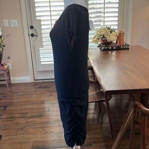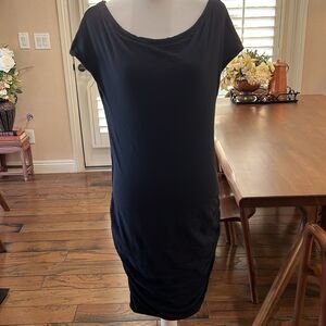 N James Perse Black Ruched Bodycon Cap Sleeve Cotton minimal Dress Size 3 L NWT