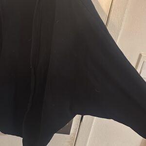 This elegant black cardigan sweater is perfect for any occasion. Its versatile design makes it a must-have in your wardrobe. Open cardigan dolman sleeves. Shrug style