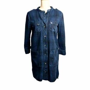 James Perse Blue And Black Plaid Cropped Sleeve Button Front Mini Dress Size 2