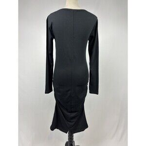 James Perse Bodycon Maxi Dress Black Size 3 Large Long Sleeve Scoope Neck Ruched