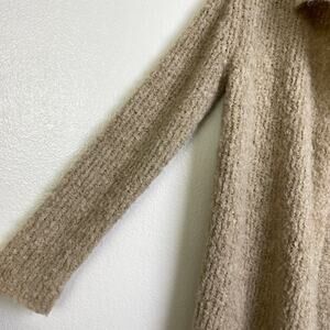 This listing is for a James Perse Women’s Boucle Cardigan Sweater. Oatmeal. Open front. Acrylic/Alpaca/Wool/Nylon Blend.