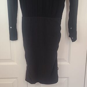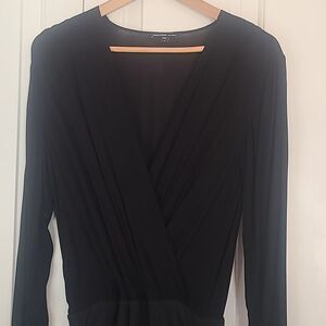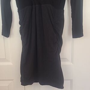 James Perse Women's, Rushed, Plunging Neckline, Faux Wrap Mini Dress in Black, Size 3 / Large.
