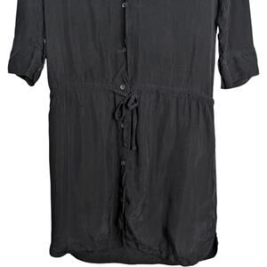 James Perse Crupo Button Front Shirt Dress Medium Black Drawstring Casual