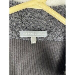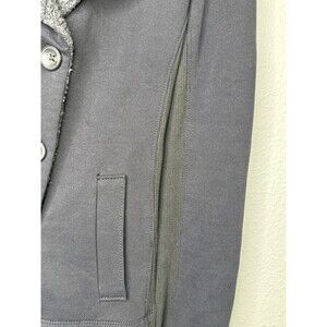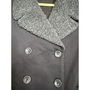 Please see all images for best item description. Great James Perse double breasted pea coat with large collar and pockets. Size 2, made in USA. Measures 16.25" flat across pit to pit, and 25.5" collar to bottom. Self is made of 100% cotton, contrast is made up of 69% wool, 17% polyamide, and 14% polyester. Any questions please ask!