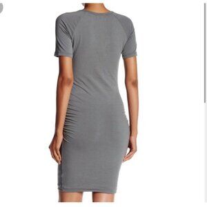 James Perse Dres size large (3) ruched gray short sleeve t-shirt dress nwt