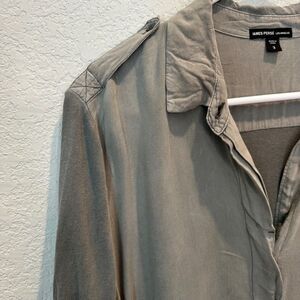 James Perse Grey Contrast Fabric Split Neck Button Front Blouse - Size L - EUC