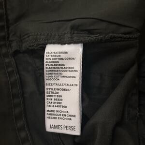 James Perse Dark Green Heavy Brushed Twill Five Pocket Button Fly Pants Men's Size 28x31.5