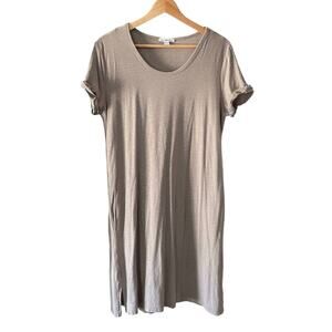 James Perse Jersey Slub Rolled Sleeve T-Shirt Dress in Fume Taupe Size 3 L