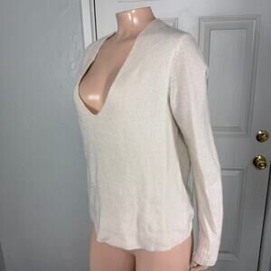 James Perse Knit Cashmere Sweater Women's 3 V neck Cream Long Sleeve Career S3-1