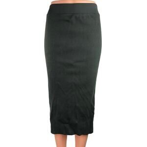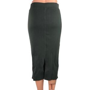 James Perse Los Angeles Black Bodycon Ribbed Knit Back Slit Calf Length Skirt
