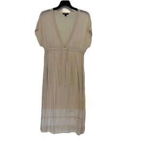 James Perse Los Angeles Women Size 2 US M Empire Dress V Neck Drawstring Tan