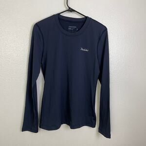 This listing is for a James Perse Women's Malibu Rash Guard. Navy Blue/White. Polyester.