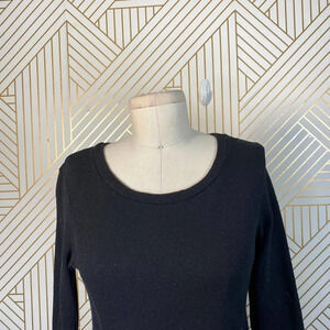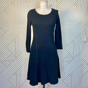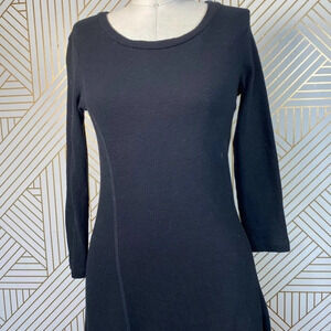 James Perse Recycled Crepe Jersey Flare Dress in Black. A slim James perse dress in a fit and flare silhouette