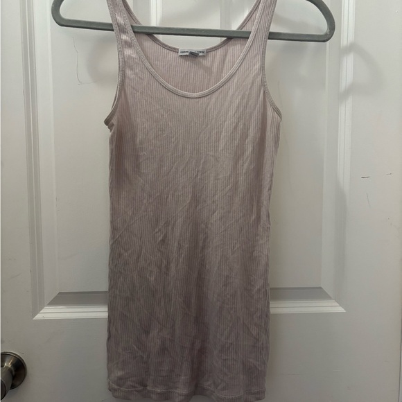 Elegant neutral tone ribbed tank by James Perse. Ideal for versatile styling and layering.