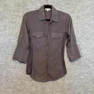 James Perse Shirt Womens 2 Gray 3/4 Sleeve Button Front Tshirt Soft Casual