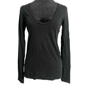 James Perse Size 1 Small Top Blouse Black Long Sleeve Scoop Neck T Shirt Tee